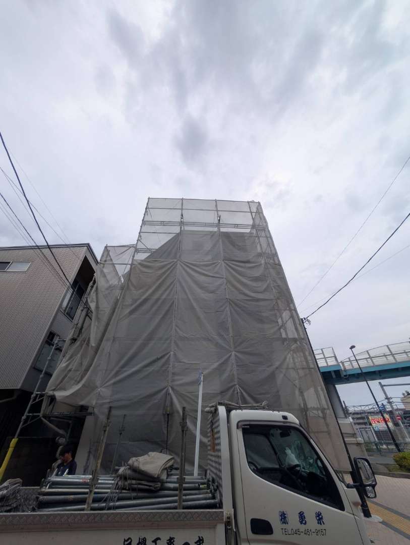 西東京市ALC造マンション塗装工事の足場を設置しました