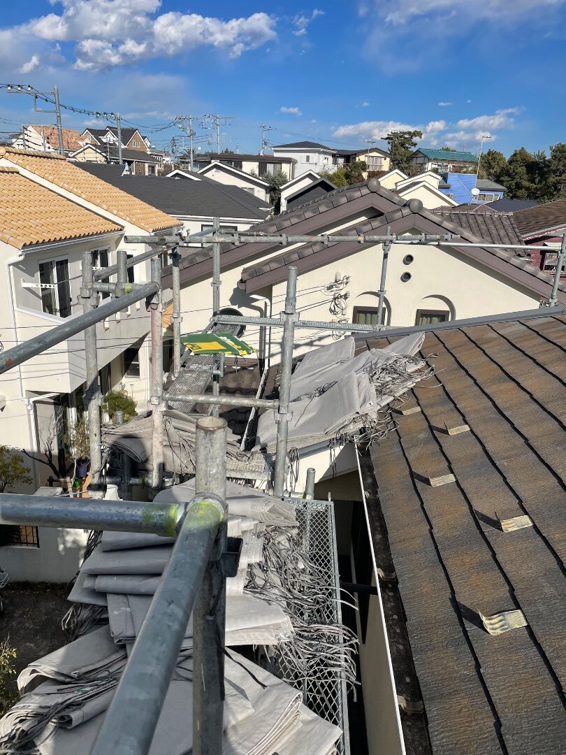 藤沢市の塗装工事の足場施工を実施しました
