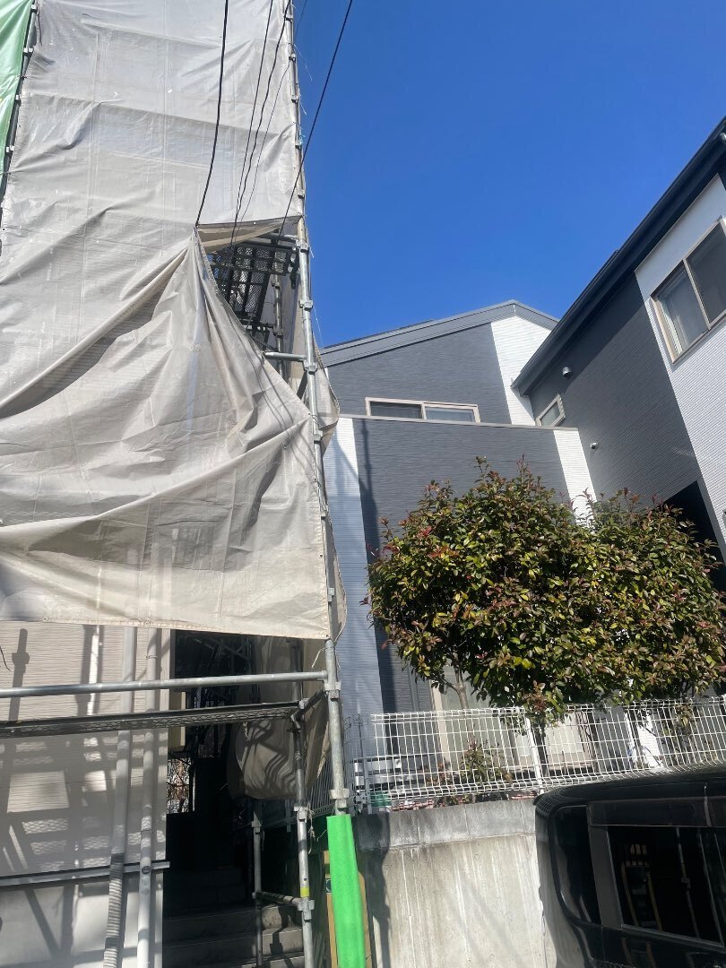 藤沢市の塗装工事の足場施工を実施しました